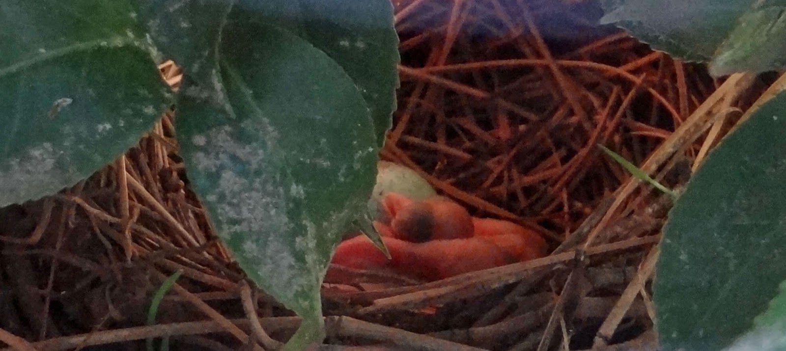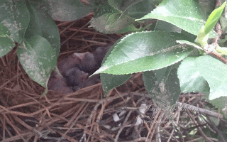 Our baby birds were born this week....There are 5 of them. Mom and dad have been kept busy feeding them and keeping them warm. Dad is really good helping with his new family. The day it rained, dad brought food to mom all throughout the day. I apologize for the quality of the photos, it's a bit hard taking them through a window. They are not always sharp. Here we go, the first photo, at this time only two of them had hatched.