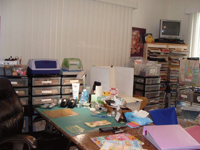 The other day when I was looking through my cards, I found this one. I'd forgotten I'd even made it. I have cards that I will never send, mostly because I can't bring myself to let them go. This is one of them. I don't know why I can't let it go, maybe the time it took to make it, maybe because the paper was one of a kind, maybe because the flowers took some time to make, maybe because it has yellow in it....yellow is my favorite color. Karen gave me the doily and I've never seen one like it before. I don't know....but for whatever reason....it's not going anywhere, but on my blog! Thanks for letting me share. Now on too........ My desk......