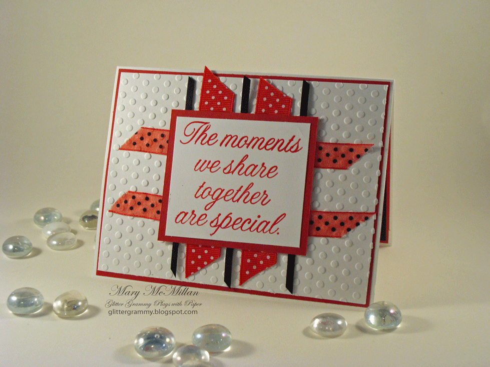 ReplyDeleteI really like your simple card and what a great idea for those little bits of ribbon that we all have. I understand why you don't want to get rid of the sunny flower card. It is spectacularly lovely. I have some cards like that too; that I just refuse to part with. Sweet baby birds. I love watching nature in the wild. You must keep us updated on their progress. Poor puppy, better go play now.