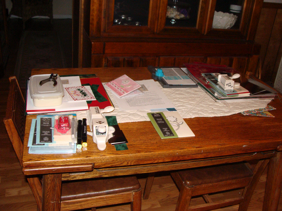 Looks organized doesn't it? Well there is another area where I'm cutting the dies that doesn't look so neat. I put the camera away before I got to that spot...sorry.....