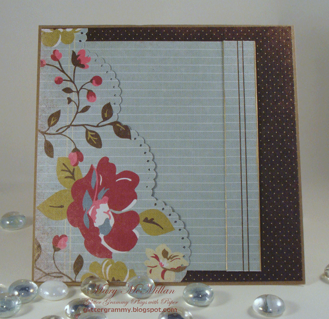Good Wednesday Morning....you know that means What's On Your Workdesk Wednesday, but before I share I desk, I want to share a card I made using Marion Smith Designs papers. This collection is called Garment District. I was lucky enough to meet Marion when she was visiting Chico and came by Paradise Scrapbook Boutique. She and her husband are the sweetest people, anyway, last year, during the Paradise Scrapbook Boutique Anniversary Party, I was gifted papers and instruction for an album made from the Mad Tea Party papers. Well, I loved the papers and the album.....thanks to Deb was beautifully created. Well, long story short....I am hooked on Marion's designs. And I am soooo excited because she is coming to PSB in February to teach and I can not wait to see what she and Karen have planned for us....Ok, so this is what the inside of the card looks like...